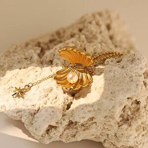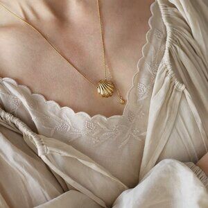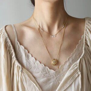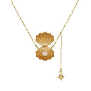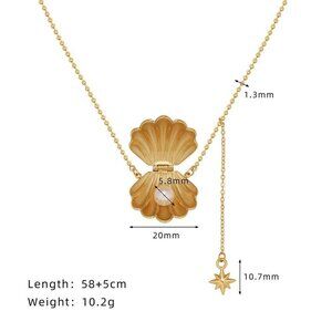 Gold Seashell Pearl Pendant Necklace Locket with Star Charm Ocean Jewelry Gift