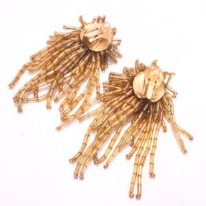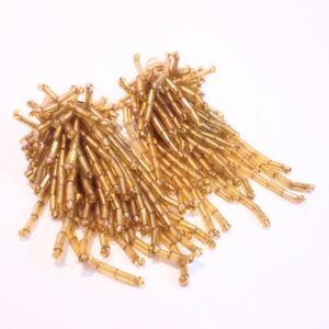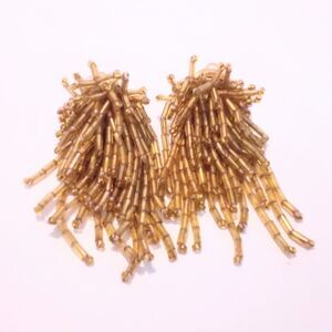 These elegant Gold Seed Bead Cluster Statement Clip Earrings are a stunning accessory that effortlessly combines vintage charm with modern flair. Each earring features a mesmerizing cluster of tiny gold seed and tube beads, intricately arranged to create a waterfall-like design that cascades beautifully, adding movement and shine with every turn. The clip-on style ensures comfort and ease of wear, making them perfect for those without pierced ears. Measuring 2 5/8" in length, these statement earrings are designed to make an impression, offering a touch of glamour to any outfit, whether casual or formal.