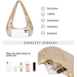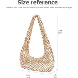 Features: Stunning all-over sequin design with durable aluminum mesh material and a soft lining. Zipper closure keeps your essentials secure. Versatile style that can be worn as a shoulder bag or carried as an evening clutch. Perfect for nights out, parties, or weddings — adds a shimmer to any outfit.