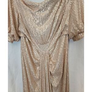 Gold Sequin Flowing 1920's Style Evening Gown Dress Size XL Waist 34 Bridesmaid