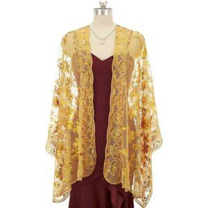 - Elegant Vintage inspired gold sequin glitter lace shawls wraps scarf