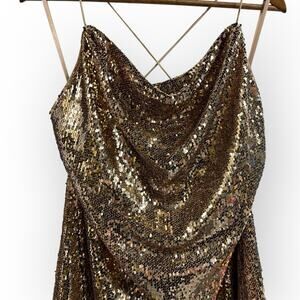 Gold Sequin Mini Dress Strappy Open Back 10 ASOS Design Party