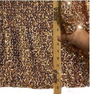 Gold Sequin Party Blouse Boat Neck 3/4 Disco Bell Sleeve Slightly Crop Relaxed