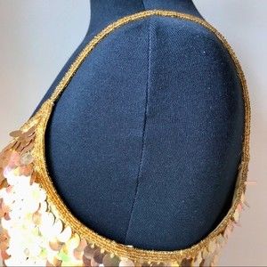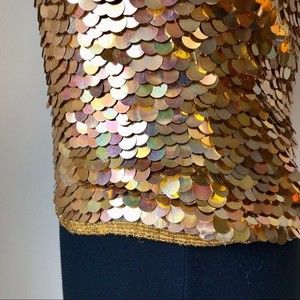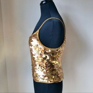 Gold Sequin Tank Top Silk Beaded Spaghetti Strap Mermaid Scales Glam CHAUDRY
