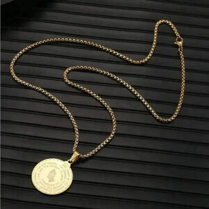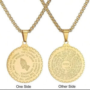 This stunning gold necklace features a beautifully crafted Serenity Prayer pendant. Its luxurious gold tone adds elegance to any ensemble.