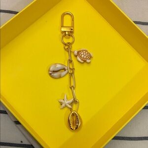 Elegant gold keychain featuring charming shell accents. Perfect for adding a touch of the ocean to your accessories.