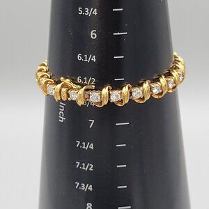 Gold Shell Tennis Bracelet Prong Set Rhinestone Crystals Safety Clasp 6 3/4 in