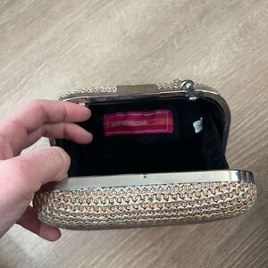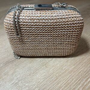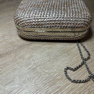 Gold Shimmer Woven Clutch Bag With Chain