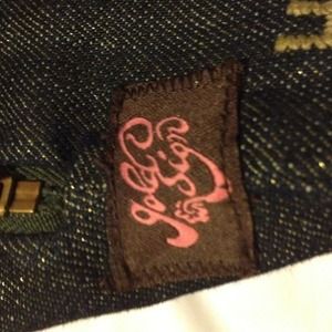 Gold Sign denim wristlet