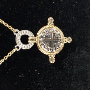 Add a touch of faith and elegance to your look with this stunning cross medallion pendant necklace with matching Earrings. Featuring a beautifully detailed gold and silver-tone design with sparkling accents, this piece is meaningful and stylish. Perfect for everyday wear or special occasions!