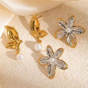 #FlowerEarrings #GoldStudEarrings #TwoToneJewelry #HypoallergenicEarrings #FloralStyle #GiftForHer #StatementJewelry #TrendyAccessories #StainlessSteelEarrings #RomanticJewelry