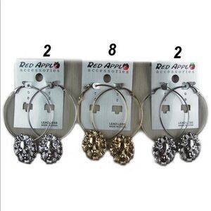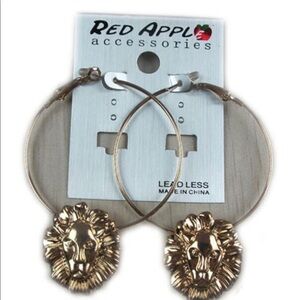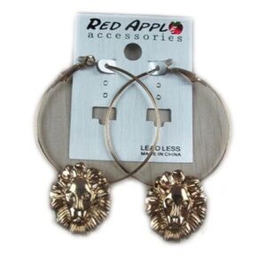 Gold Silver Lion Design 2” Large Hoop Earrings