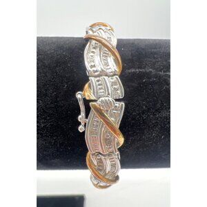 Gold & Silver Tone Bracelet W/ Cubic Zirconia Accents 7 Inches Elegant Design Se