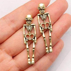 Silver Dangling Skeleton Earrings Skulls Bones Gothic Skeletons Goth Skull Studs