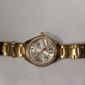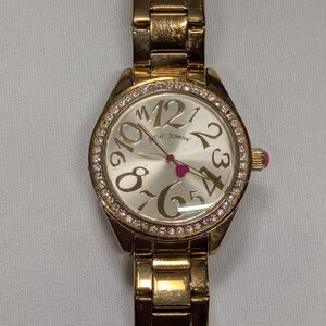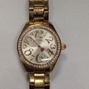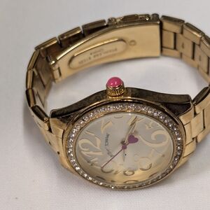 Gold Betsey Johnson Watch with Crystals ✨ – Iconic Pink Heart