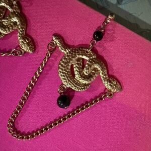 Striking goldtone statement earrings designed with sculptural snake silhouettes and glossy black bead accents. The serpentine shape brings a bold, gothic edge while the metallic finish adds just enough shine for a glam, Y2K-inspired feel. Perfect for alt fashion lovers, streetwear stylists, or anyone looking to make a unique jewelry statement.