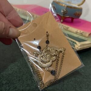 Gold Snake Statement Earrings Black Beads Asymmetrical Pair Gothic Y2K Jewelry