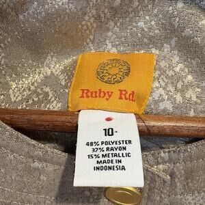 Elevate your wardrobe with the Gold Snakeskin Print Jacket from Ruby Rd., a piece that blends classic style with a chic animal print. Tailored for a regular size 10, this short jacket features a striking gold snakeskin pattern, long sleeves, and a single-breasted button closure that adds a touch of sophistication to any casual look.