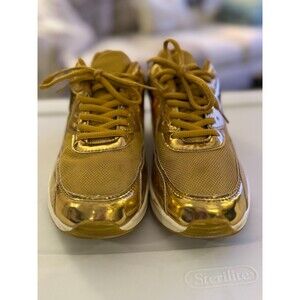 Gold Sneakers Womens Lace Up Sz 41 EU or Sz 10 US Sporty Shiny Party Festive
