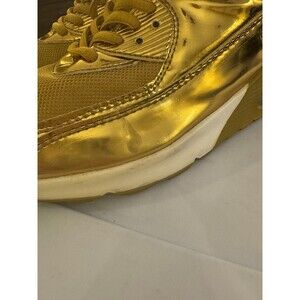 These gold lace-up sneakers for women are perfect for adding a touch of glamour to your casual or party outfits. With a low-top style and a shiny solid gold color, these athletic shoes are both sporty and festive. Featuring a rubber outsole, synthetic upper material, and lace-up closure, these size 41 EU or 10 US sneakers are comfortable and stylish for springtime activities like walking. Perfect for women looking for a statement shoe to elevate their style.