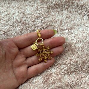 Elegant gold snowflake keychain with intricate design. Perfect for adding a touch of luxury to your accessories.