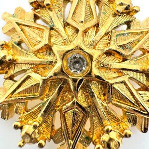 Gold Snowflake Pendant Clear Crystal Center 1 3/8 Inches Elegant Jewelry Design