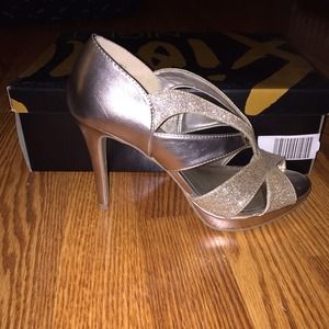 These gold heels are perfect for prom or any special occasion. Only been worn once or twice. It's in perfect condition.