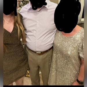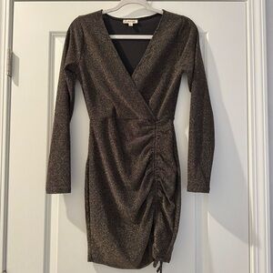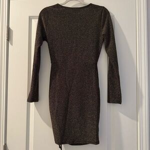 Long sleeve gold sparkle dress. Black color underneath.