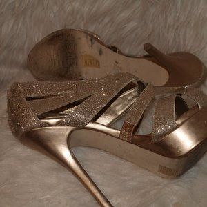 Gold Sparkly High HEELS BY ALDO SIZE38 USED FOR PHOTOS ON PAVEMENT