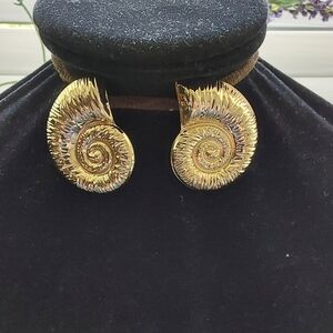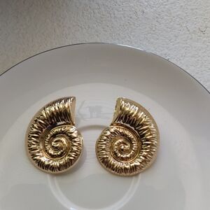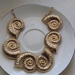 Elegant gold spiral necklace and earring set, perfect for any occasion. Add a touch of sophistication to your outfit.
