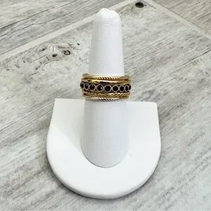Gold Stackable Rings. Size 8. Set of 5 rings. Wear alone or all together. Perfect for adding a touch of sophistication to any outfit. Gold tone. Pre loved, barely worn. Excellent condition.