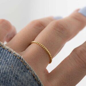 Premium Quality:Each twisted rope ring measures 1mm in width, is handmade from 14k real gold material, super thick plating layer of gold ensures a better color retention and shine than bargains. High polished. Hpoallergenic. Comfort fit