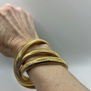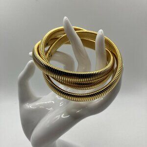 Gold Stainless Steel Interlocking Bracelet Chunky Stretch Golden 3 Bracelets
