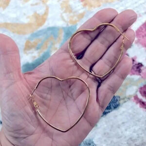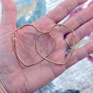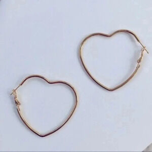 Gold Stainless Steel Large Heart Shaped Hoop Earrings NWT