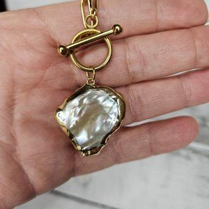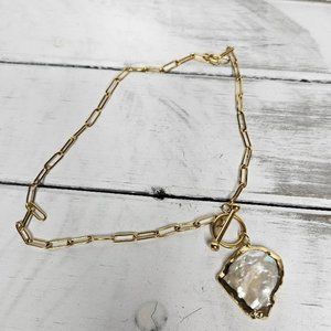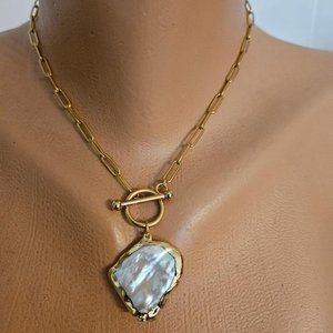Gold Stainless Steel Paper Clip Freshwater Genuine Biwa Toggle Necklace 16"