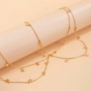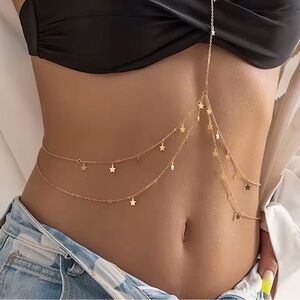 Elegant gold body chain with star accents. Perfect for adding a touch of glamour.