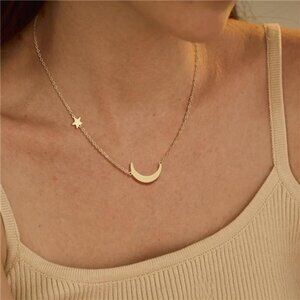 #StarMoonNecklace #CelestialJewelry #GoldPendant #MinimalistNecklace #LayeringNecklace #DaintyJewelry #EverydayStyle #GiftForHer #14KGoldPlated #PoshStyle