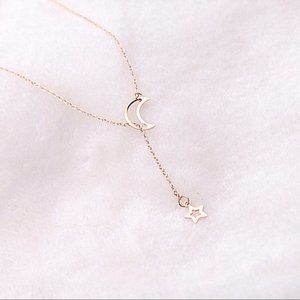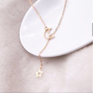 Cosmic dainty minimalist gold toned star and moon necklace. Brand New in package.