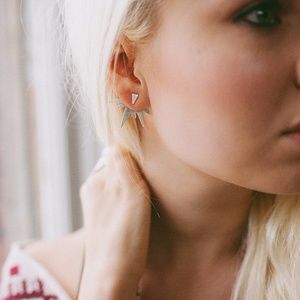 Brand new and stunning starburst ear jacket earrings. The gold starburst make up this a dainty and edgy combo. Backing sits tightly on and you don't have to worry about loosing backing. Perfect to wear out at night or during the day. Can wear alone as a triangle stud as well.