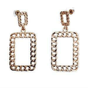 Women's glam chunky big gold plated chain link square Statement Earrings, new no tags