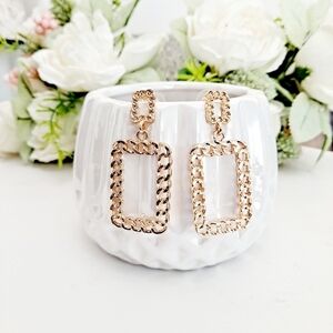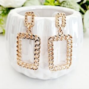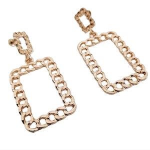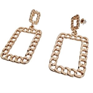 Gold Statement Earrings Metallic chunky chain link square Retro💖2/$30