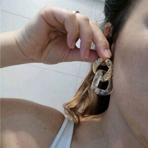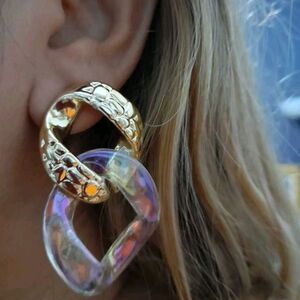 Gold Statement Hoop Earrings Chunky Clear Resin Chain Link Oversized 💖