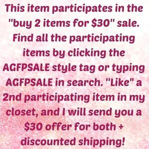 💖 BUNDLE THIS ITEM WITH ANOTHER 2/$30 ITEM IN MY CLOSET, AND I WILL SEND YOU A $30 OFFER ON BOTH! There are hundreds of participating items to choose from. To find these items, type AGFPSALE in the search bar on Poshmark or click the AGFPSALE style tag on this listing!