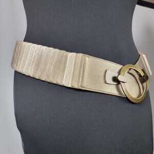 Gold Statement Stretch Waist Belt | Wide Elastic Belt with Circle Buckle