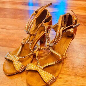 Gold Strappy Suede Bottom Salsa Dance Heels