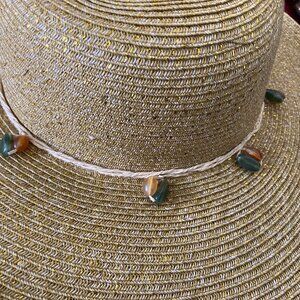 Gold Straw Metallic Sun Hat with Colored Beaded Trim