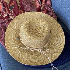 Beautiful Straw hat with a gold metallic look