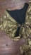 Gold two piece. Stretchy material. Look your best on vacation or at brunch with your homegirls.