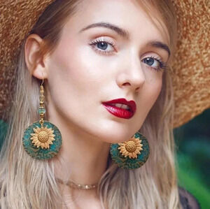 Gold Sunflower Turquoise Bohemian Dangle Earrings