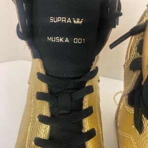Supra Muska 001 gold high top sneakers. Black laces, some signs of wear but overall good condition. size 5